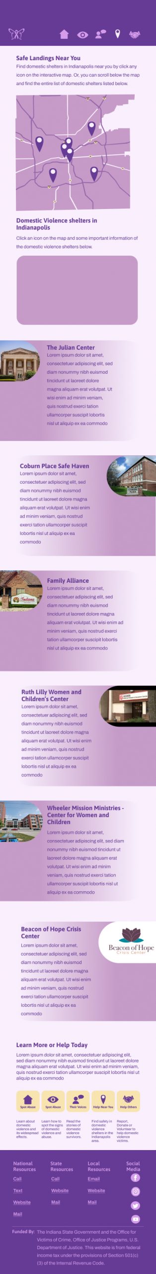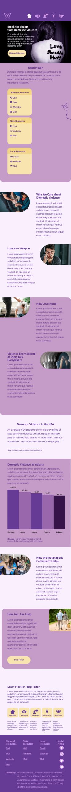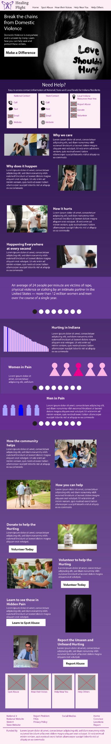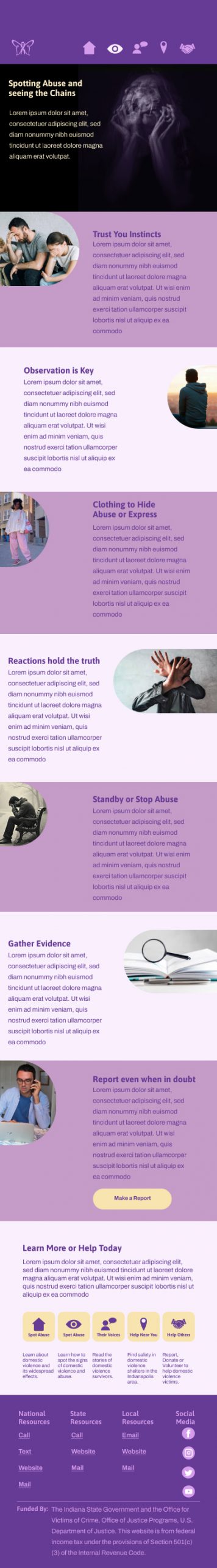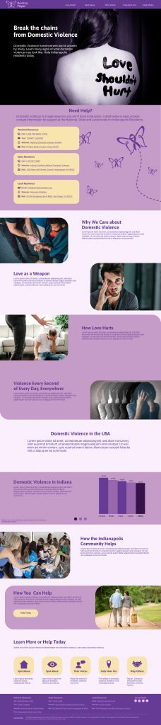 This project’s objective was to create a responsive website design on a real-world problem, focusing the reach of the project being local. The responsive website design had to be for desktop, tablet and mobile. The design has a minimum of four pages and an interactive function. There also had to be a trailer video with no voice, and a walkthrough video for all versions of the website design. Also a Eposter with all versions of the website design, mockups, visual identity elements, and assets.