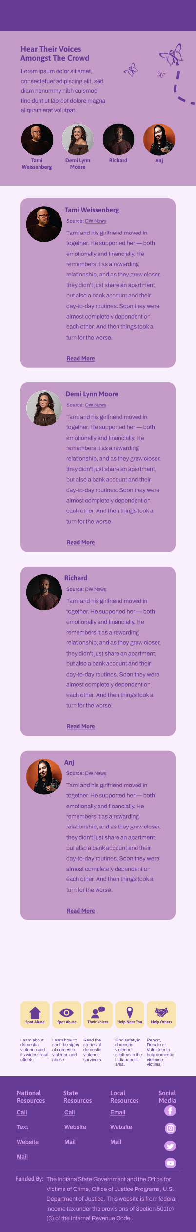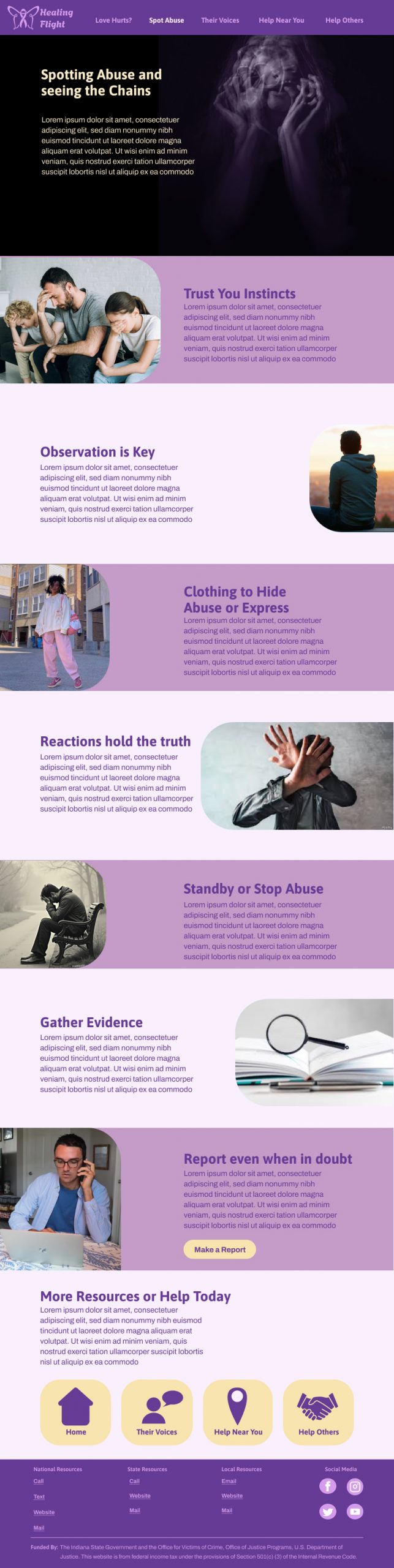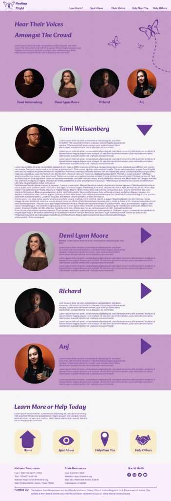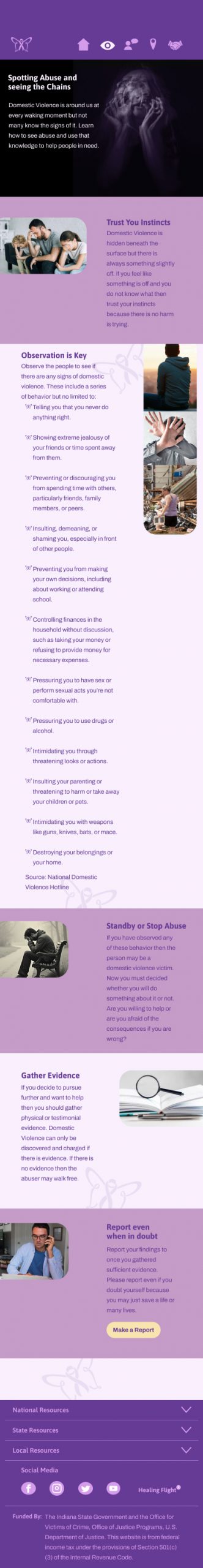 This project’s objective was to create a responsive website design on a real-world problem, focusing the reach of the project being local. The responsive website design had to be for desktop, tablet and mobile. The design has a minimum of four pages and an interactive function. There also had to be a trailer video with no voice, and a walkthrough video for all versions of the website design. Also a Eposter with all versions of the website design, mockups, visual identity elements, and assets.